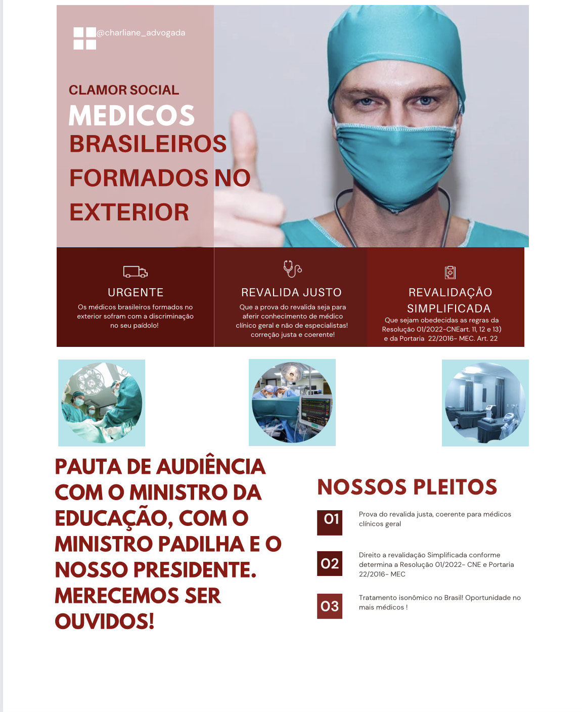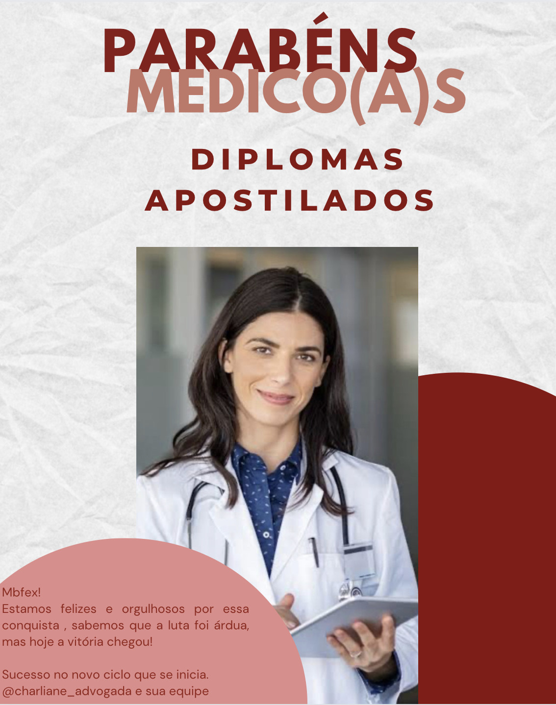 Advogada, atuante em Revalidação de Diplomas e Médicos Brasileiros Formados no Exterior.